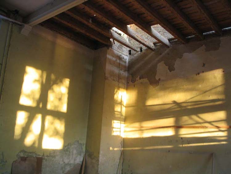 Zelfs tijdens de sloopfase is er sprake van sfeerverlichting in het pand.