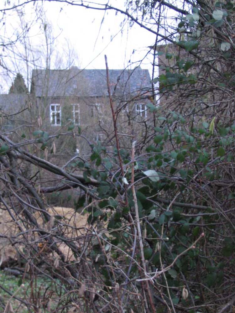 Uitzicht op het schooltje vanuit de voormalige kloostertuin.
